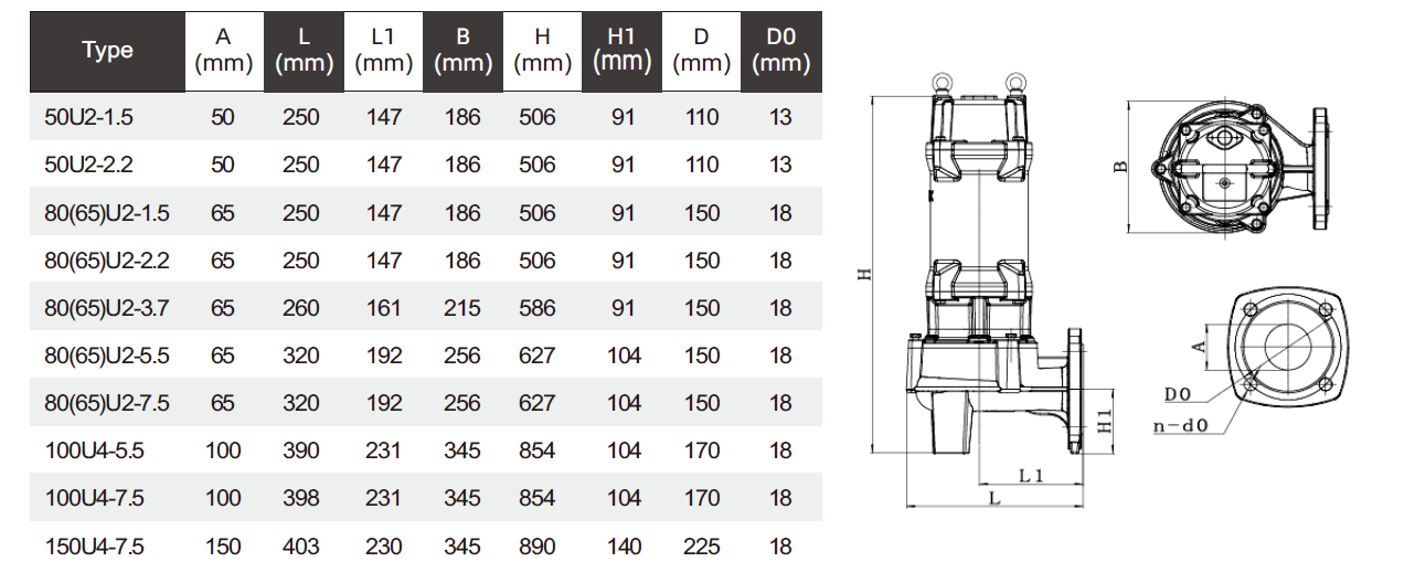 U High-Flow-Rate Submersible Sewage Pump